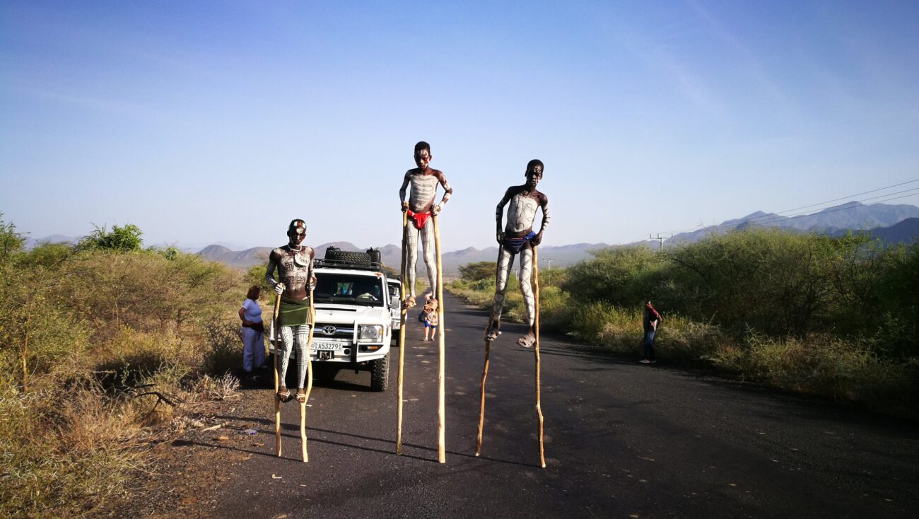Pusryčiai. Vykstame į Kotcho kaimą, kad susipažintume su Karo gentimi ir pasigrožėtume Omo upės slėniu. Karo, tai maža gentis, kurioje yra nuo 1 000 iki 3 000 žmonių. Dauguma jų tradicinių ritualų gali būti atsiradę kartu su kita, kur kas didesne gentimi – hameriais, nes jų giminystės linija ta pati. Šios abi grupės kalba beveik identiškomis kalbomis, ceremonijose naudojama panaši simbolika. Karo žmonės iš kitų kaimyninių genčių išsiskiria gausiais piešiniais ant kūno ir veido. Jie kasdien dažosi spalvota ochra, balta kreida, geltonomis mineralinėmis uolienomis, sumalta geležies rūda, visomis natūraliomis medžiagomis, kurios būdingos jų gyvenamai teritorijai. Konkretūs piešiniai ant kūno gali kasdien keistis ir skirtis turiniu – nuo paprastų žvaigždžių ar linijų iki gyvūnų motyvų ar gausybės rankų antspaudų. Kaip ir hameriai, karo genties vyrai naudoja molį šukuosenoms formuoti, jos atspindi jų statusą, grožį ir drąsą. Vyrai taip pat dengia kūnus ir veidus pelenų bei riebalų mišiniu – tai yra vyriškumo simbolis, naudojamas per svarbias šventes ir ritualines klanų kovas, kurios vyksta po derliaus nuėmimo. Karo genties moterys dažniausiai dėvi tik odines karoliukais puoštas juostas, dengiančias priekinę kūno dalį (loincloth). Jų plaukai sutepti raudonu moliu ir nukirpti trumpai, dubens forma. Vyrų ir moterų kūno randai perteikia reikšmingą simboliką ir grožį. Randai ant vyro pečių rodo, kad jis nugalėjo priešą iš kitos genties ir yra gerbiamas bendruomenėje. Gilūs pjūviai ant moters pečių ir liemens yra laikomi patrauklumo ženklu. Jie yra įtrinami pelenais, kad būtų ryškesni ir pabrėžtų seksualumą. Vyras gentyje gali turėti žmonų tiek, kiek nori, tačiau privalo jas išlaikyti, todėl įprastai dauguma vyrų turi tik po dvi ar tris. Turmis – hamerių genties centras. Geriausiai žinomoje gentyje gyvena 15 tūkstančių žmonių. Ši gentis taiki, bet nešiojasi ginklus, kad apsigintų nuo dažnų laukinių žvėrių ir kaimyninių genčių antpuolių. Vyrai prižiūri gyvulius – karves, ožkas ir avis, kurios sausuoju sezonu iškeliauja ganytis į Omo upės slėnį. Moterys beveik visą laiką gyvena vienos. Vyrai iš ganyklų į kaimą sugrįžta tik vienu tikslu – pratęsti giminę, o po to vėl išeina. Hamerių genties žmonės atletiški, jų kūno sudėjimas itin grakštus. Jie yra dailių ir išraiškingų veido bruožų ir garsėja kaip dideli puošeivos. Moterų plaukai supinti į daugybę mažų kasyčių, suteptų molio, pelenų, ir sviesto mišiniu. Kaklas padabintas gausybės kriauklių ir karoliukų vėriniu, rankos ir kojos papuoštos aliuminio apyrankėmis. Hameriai labai mėgsta fotografuotis, laukdami už tai atlygio. Jeigu pasiseks, pamatysime didelę hamerių genties šventę – jaunuolių įšventinimo į vyrus ceremoniją, vadinamą „šokinėjimu per jaučius“ (mokamas papildomas mokestis kaimo bendruomenei). Kai berniukas subręsta ir jo šeima sukaupia pakankamai daug galvijų, kad galėtų susimokėti už nuotaką, ateina laikas įšventinimo į vyrus ceremonijai. Tai didelė šventė, į kurią susirenka giminės ir draugai ne tik iš savo, bet ir aplinkinių kaimų. Nakvynė Turmi.